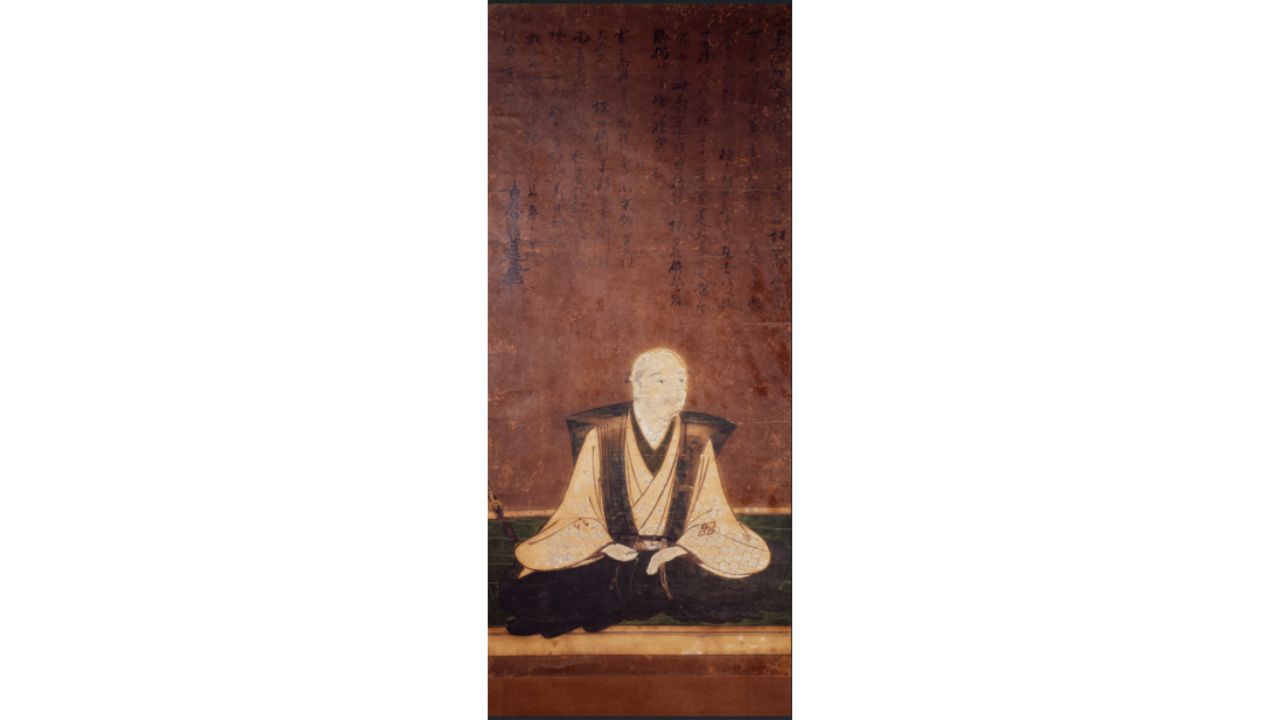寺伝によれば、鎌倉時代中期に日蓮上人の高弟である日像上人(1269〜1342)が創建したと伝えられています。その後、武田氏の庇護を受け、さらに京極氏にも厚く保護された由緒ある寺院です。 本画像の小足掃部は京極高次の家臣であり、『京極家臣分限帳写』によれば、小浜時代には400石、松江時代には1,030石を領した上級武士で、当寺の中興開基とされています。なお、掃部の祖先と見られる人物が『若狭国守護代記』延慶2年(1309)の条に「北条代官帆足入道成願」として記されており、この時期が当寺創建の永仁元年(1293)より16年後であることから、祖先と当寺との因縁により、像主が若狭に入部した際に方丈を構え中興したものと考えられます。小足掃部画像(縦69.1㎝×横31.7㎝)は、画中の賛により元和8年(1622)に制作されたことが知られています。 夫人画像(縦73.2㎝×横42.5㎝)は、画中の賛に没年を元和4年(1618)と記し、その子の発願による供養像として制作されたことがわかります。特にこの画像は、桃山風の女性風俗をよく伝えるとともに、賛や技法などから、両画像がほぼ同時期の元和8年(1622)に同一画工によって描かれたことがうかがえます。 管理者:妙興寺