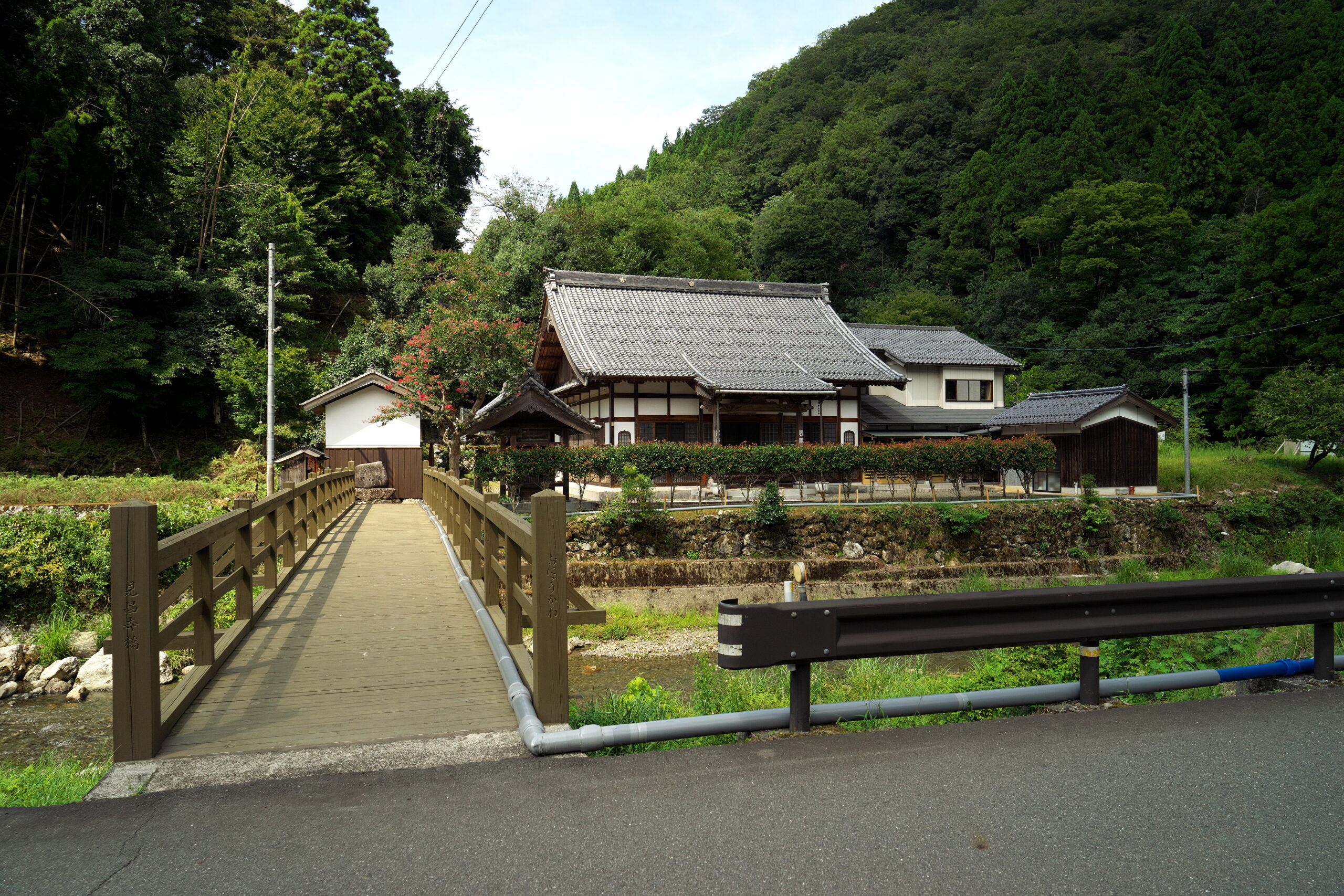 その先へ進むと、見昌寺(けんしょうじ)が見えてきます。大きなお堂を望むことができ、橋から眺める遠敷川も清らかで、日差しを受けて水面がキラキラと輝いていました。今回は時間の都合で立ち寄れず、県道沿いからの拝観にとどめましたが、あらためて訪れてみたいと思わせるお寺でした。