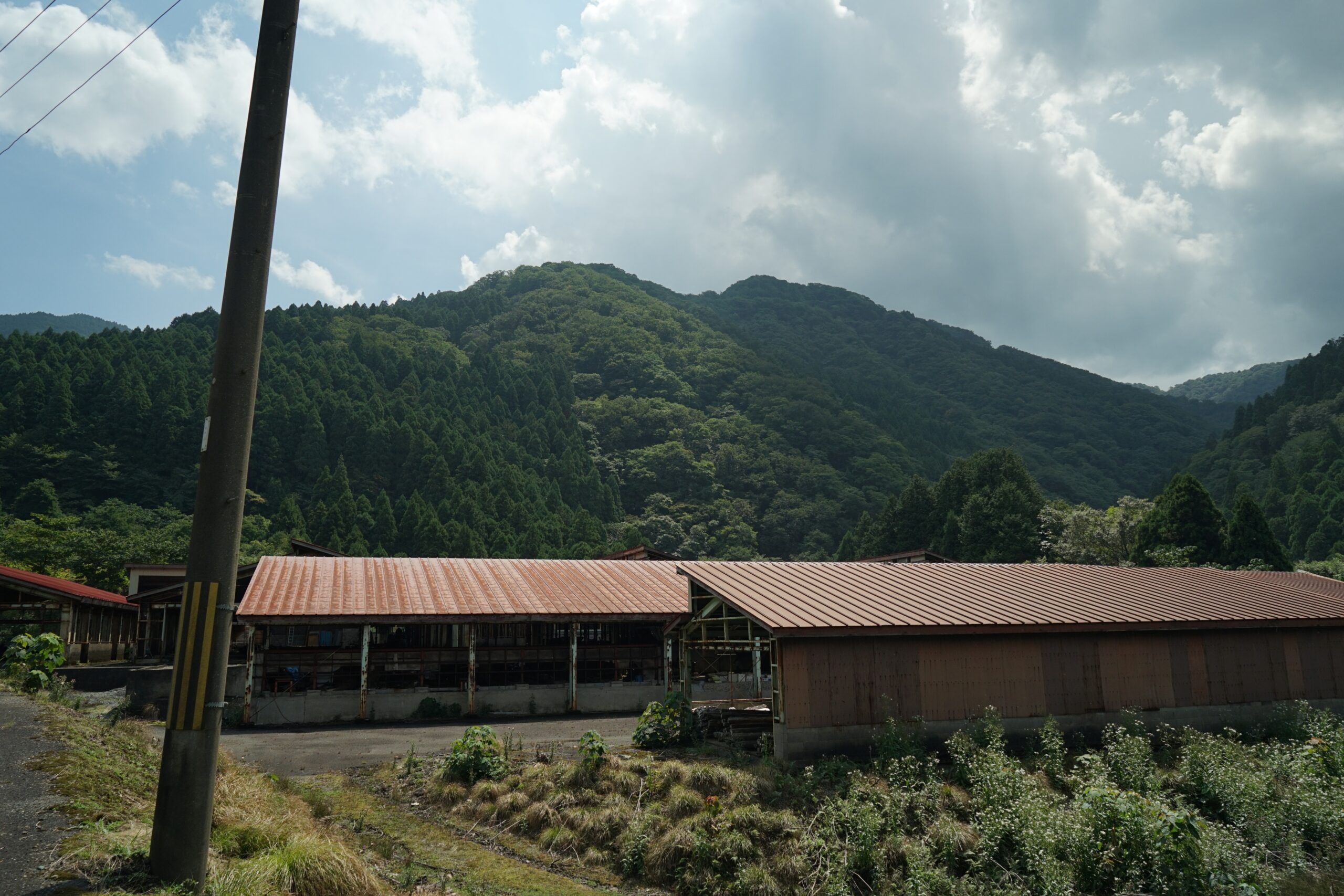 上根来の外れには、かつて広大な畜産団地が広がっていました。平成初期まで数百頭もの牛が飼われていたそうで、いまもいくつもの牛舎跡が残っています。なお、敷地内は立ち入り禁止となっていますのでご注意ください。