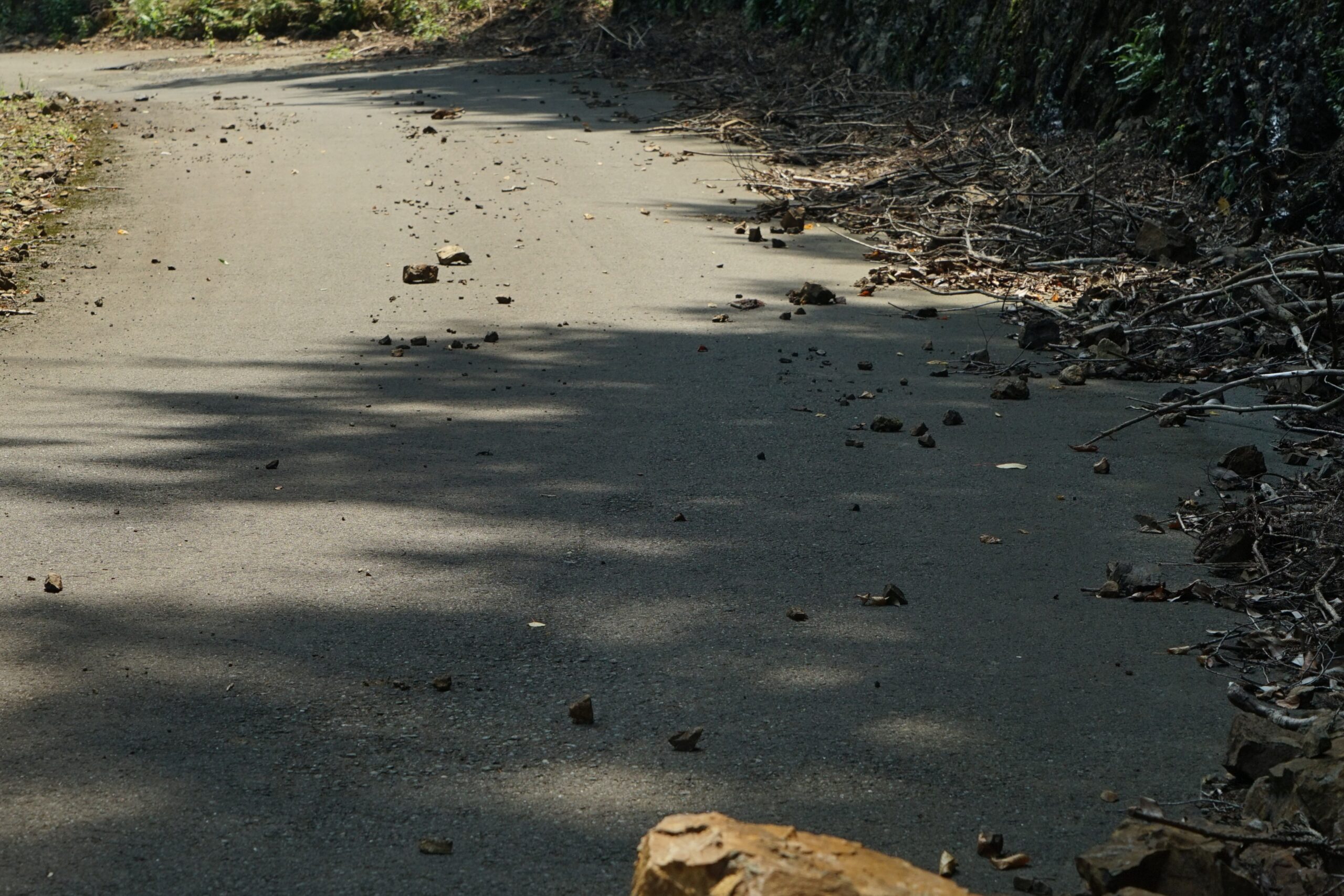 上根来の集落を後にし、最終目的地「おにゅう峠」へ向けて再出発します。ここからは落石や枝葉が散らばっている箇所もあり、慎重な走行が必要です。