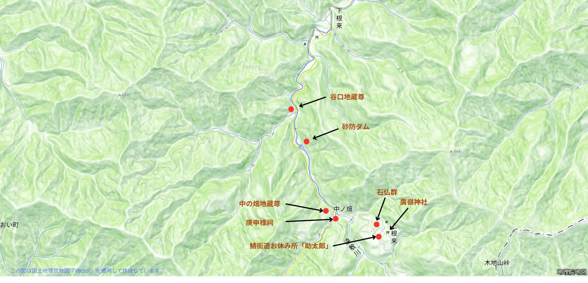 鯖街道の壁画から歩いて5分ほどで、下根来(しもねごり)地区に到着しました。少し周辺を散策してみます。