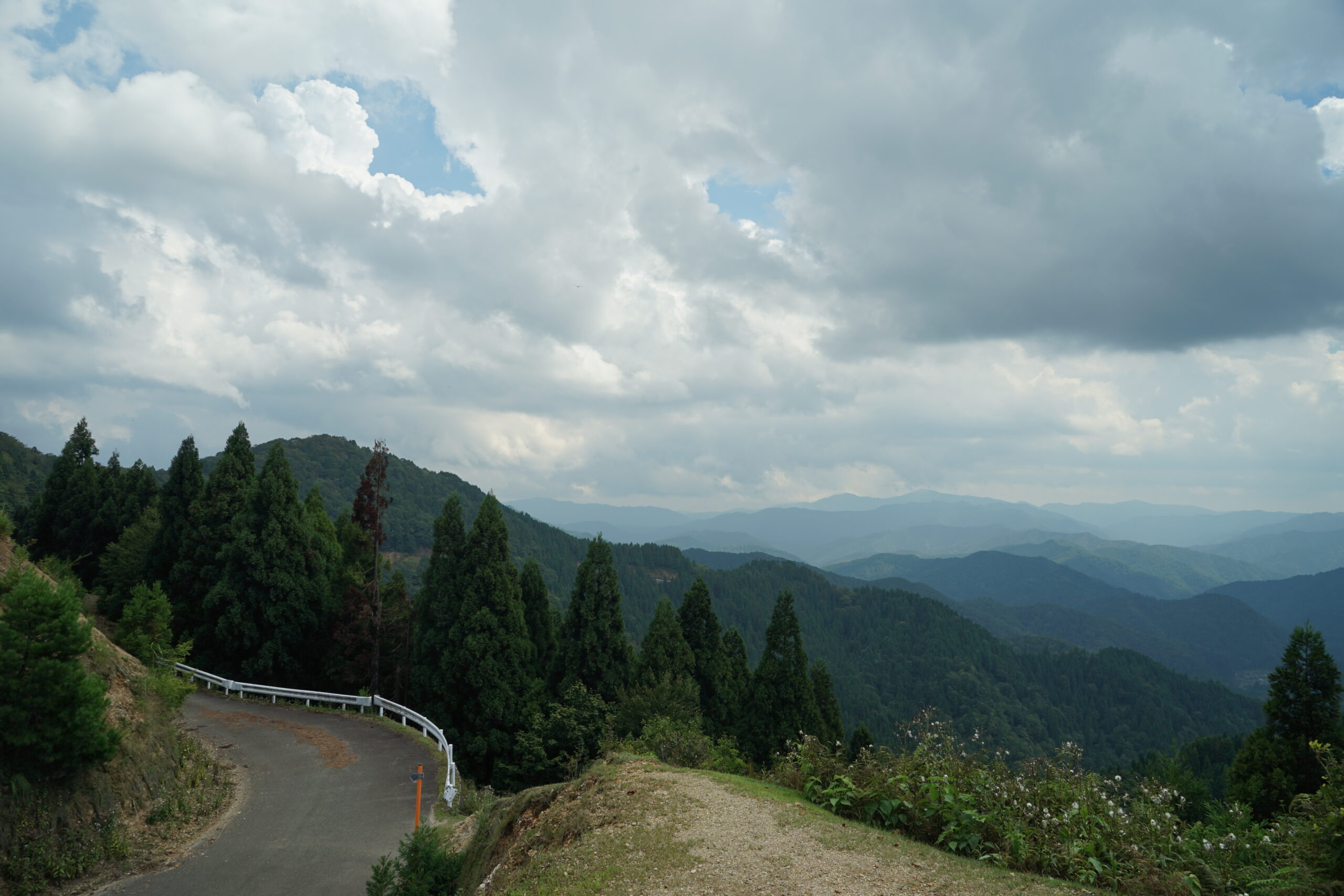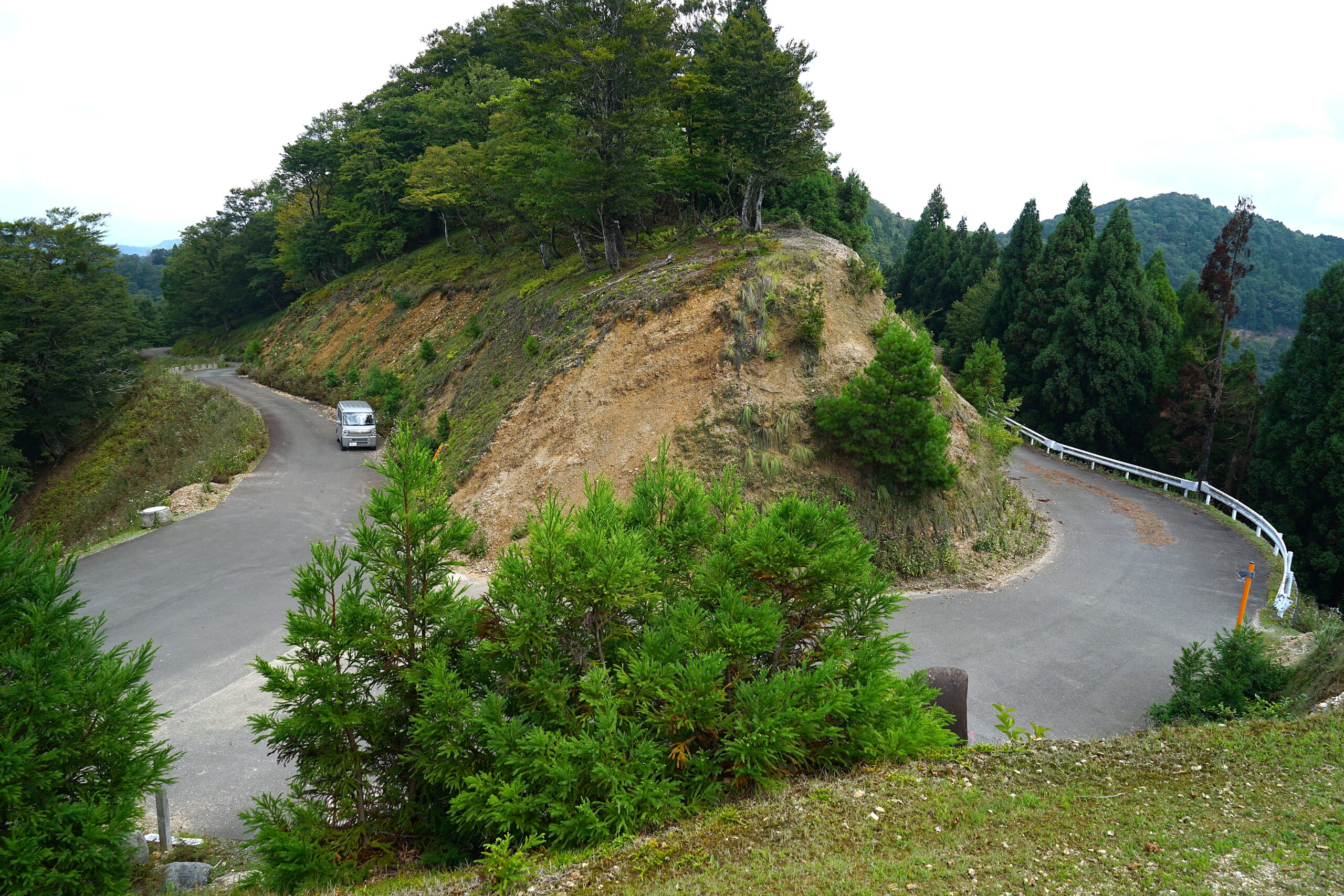 ついに「おにゅう峠」に到着です。取材時は滋賀県側が通行止めになっていたため、反対側から登ってくる車はありませんでした。