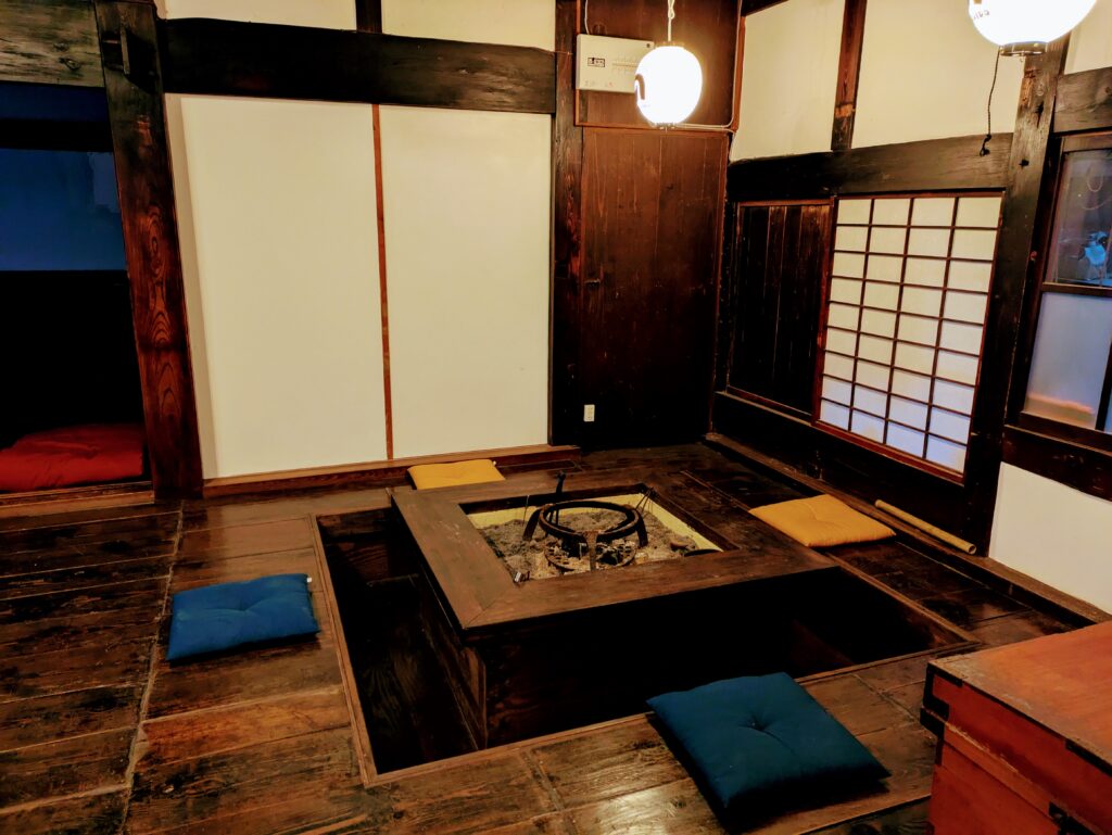 囲炉裏と木の香りでとっても落ち着きますよ。遊び疲れた後だと動きたくなくなります。(笑)
