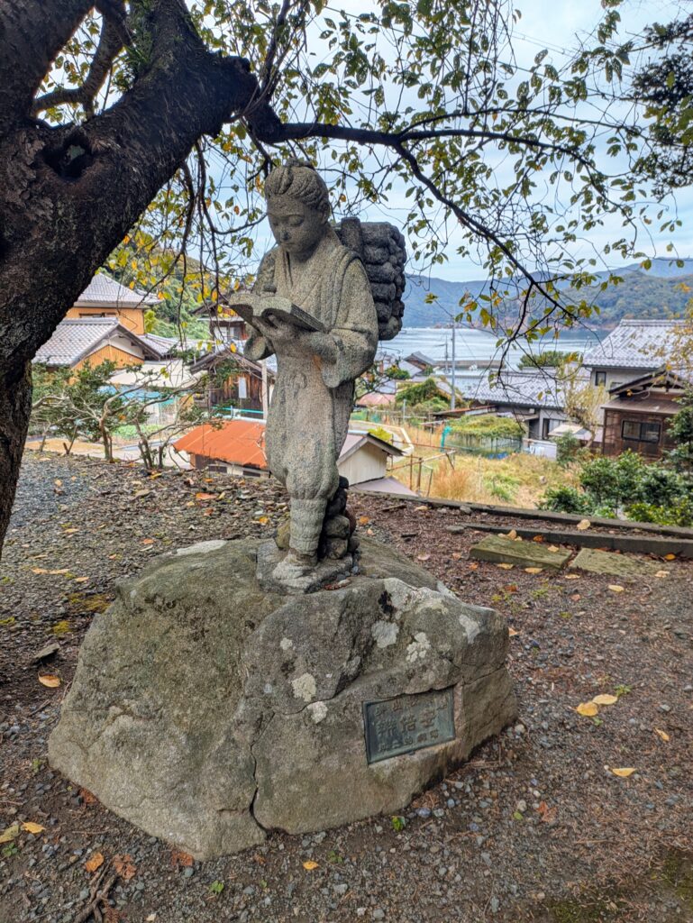 最近ではあまり見かけなくなった二宮金次郎の像が建っています。昔あった小学校の名残だそうです。小学生の頃、私の通っていた小学校にもあったので懐かしい気持ちになりました。(笑)
