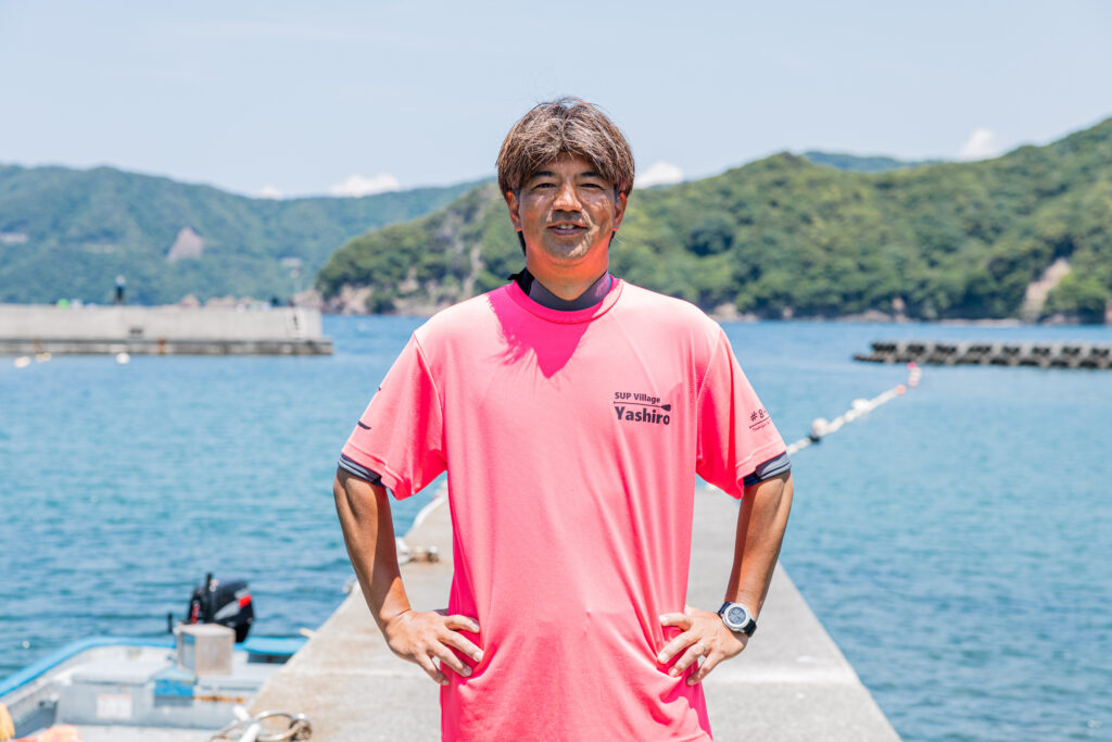 小浜市出身の佐藤善一さんは、公務員を早期退職後、地元を盛り上げるために幅広く活動されています。公務員時代には小浜市の地域活性にも取り組み、仕事の傍ら、湾内で波が比較的穏やかな矢代でSUPを楽しんでいました。