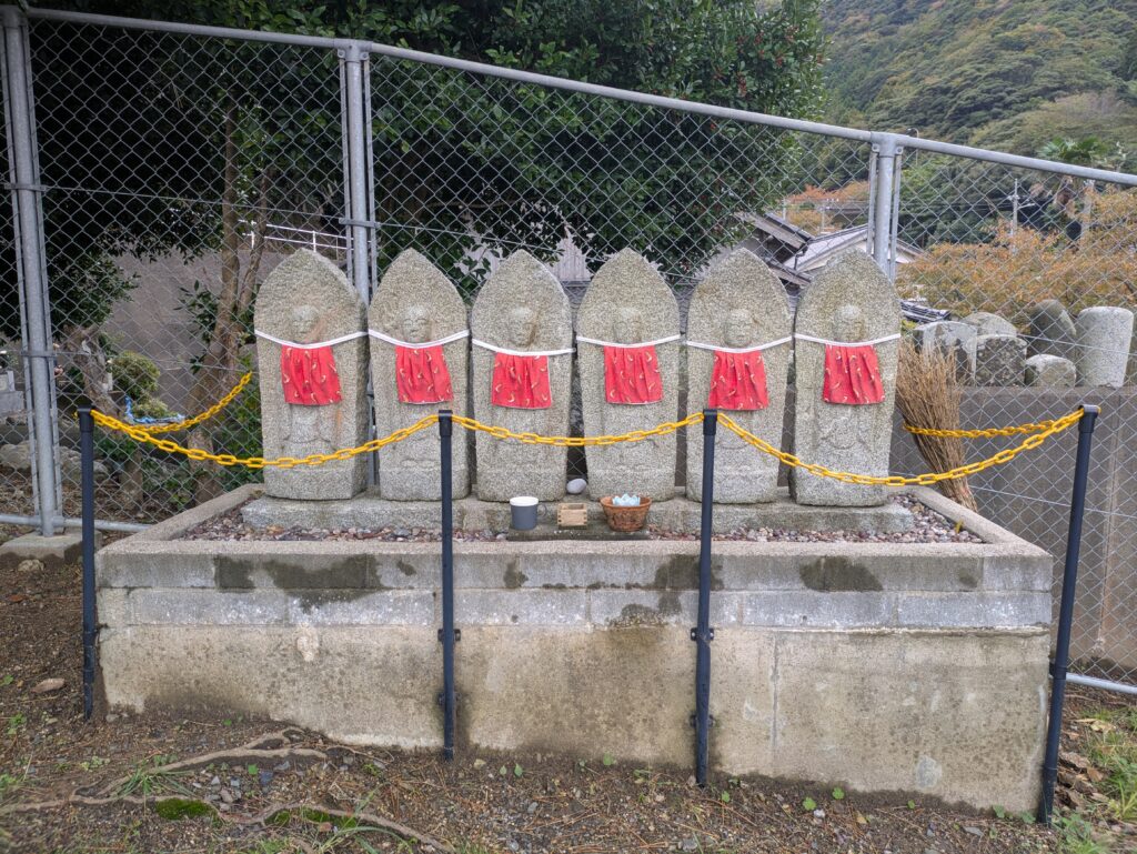 お地蔵様が6体並んでいます。以前は漁港付近に並んでいました。土砂が流れてきたため、移動されたそうです。