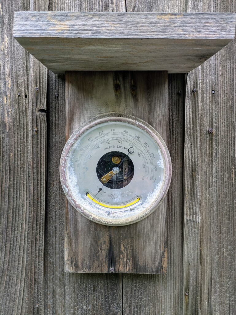 昔の漁師たちは、この気圧計でその日の天気を予想し、漁に出るかの判断をしていました。今では壊れて、針は動かなくなってしまいました。