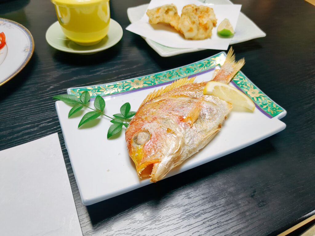 続いて運ばれてきたのは、なんと一人一匹丸ごとの鯛の塩焼き!