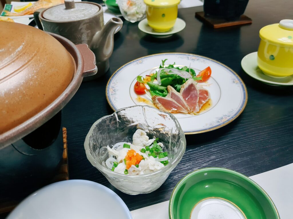 阿納の民宿でフグをいただくのは初めてではないのですが、カルパッチョが出てきたのは初めてでビックリ!まるでホテルのフルコースのようですよね。