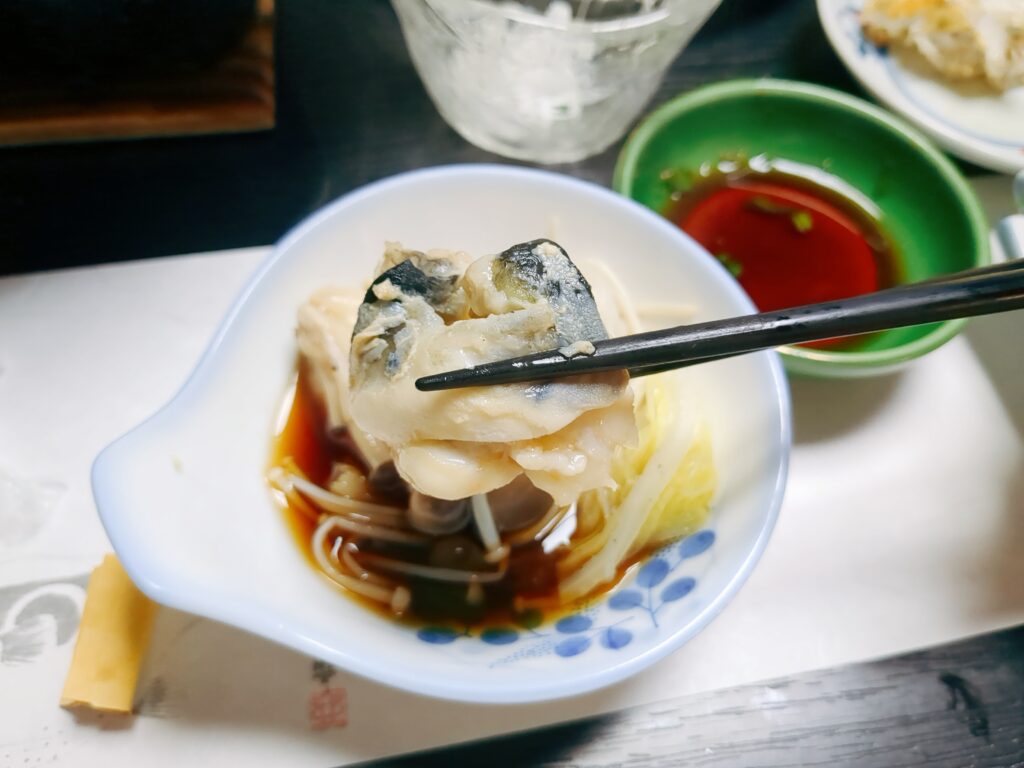 お野菜もシャキシャキ感が残っていて、フグやきのこの旨味が染み出たお出汁は、最後の一滴まで飲み干したくなる美味しさでした。