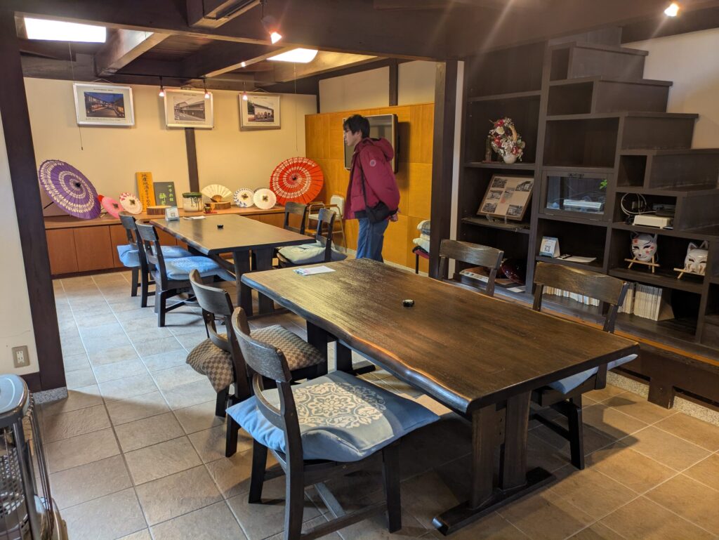 1階はカフェ兼ギャラリースペースで食事や飲み物を楽しむことができます。リノベーションされており、快適ながらも明治時代の風景を感じることができます。