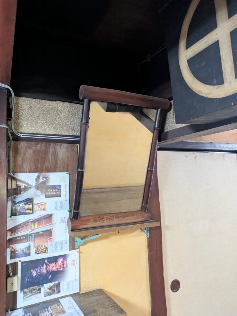 廊下には当時の芸妓さんが自分の身だしなみを確認する鏡がありました。