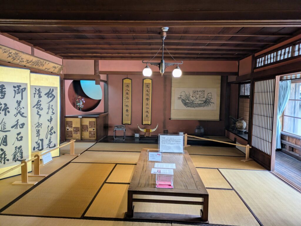 ここでは掛け軸や展示物の説明や、隣の四帖半のせま~い部屋が一体何に使われていたか…などを教えてくれます。僕が行ったときはクイズ形式で楽しく教えてくれました!