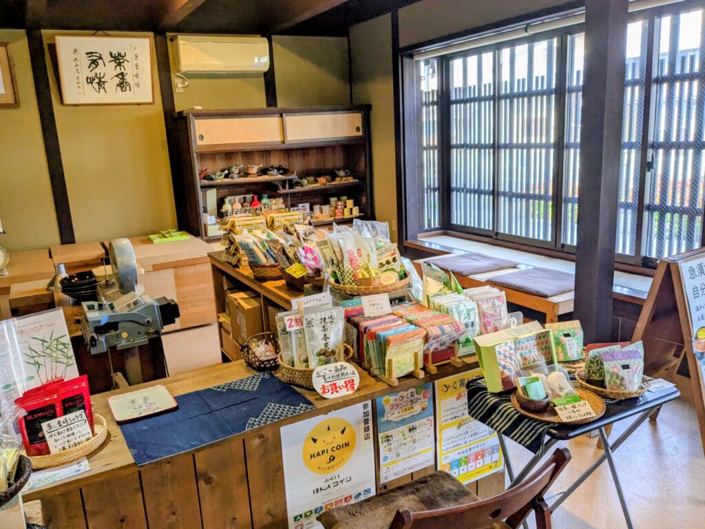店内にはお茶や紅茶、お抹茶といったお茶関連の商品が並びます。
