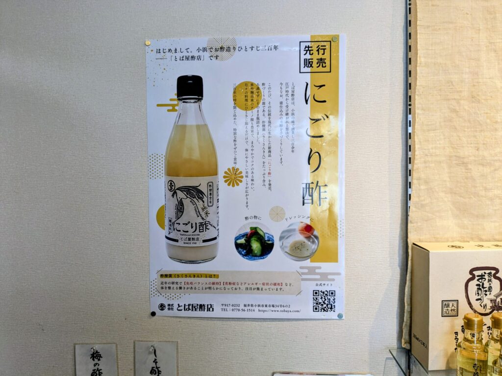 健康を気遣う方への贈り物にはもちろん、自分自身の日々の食事にもおすすめな商品が揃っているとば屋酢さん。小浜を訪れたら、ぜひこの「お酢の聖地」に立ち寄ってみてください。