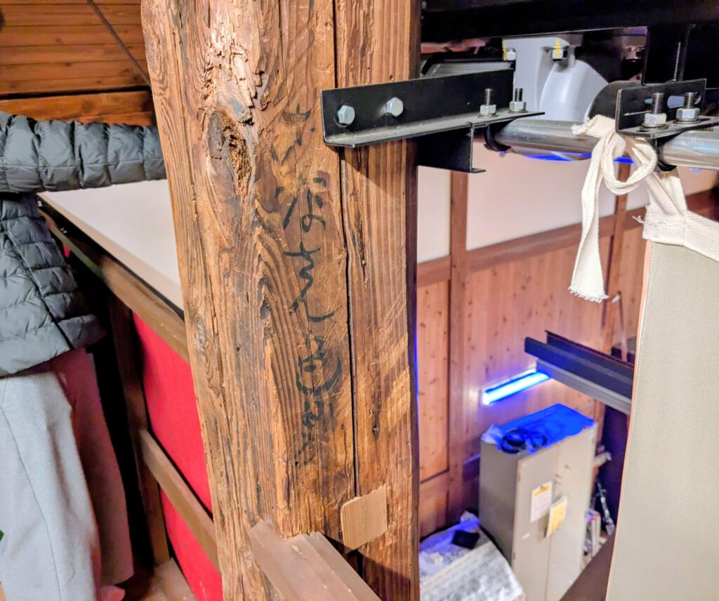 当時の貴重な木材がそのまま使用されている部分があり、そこには昔の方が書いたであろう落書きがありました。