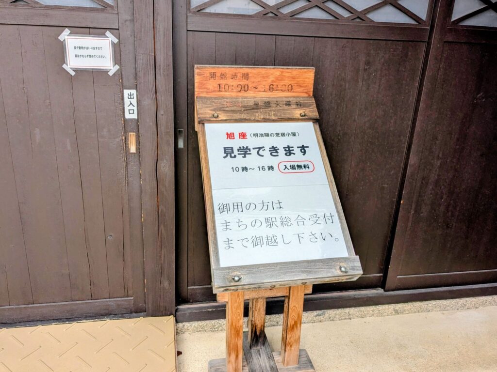 旭座はただの観光スポットではありません。今でも芝居や講演会、落語などのイベントに貸し出されており、現役の「表現の場」として機能しています。