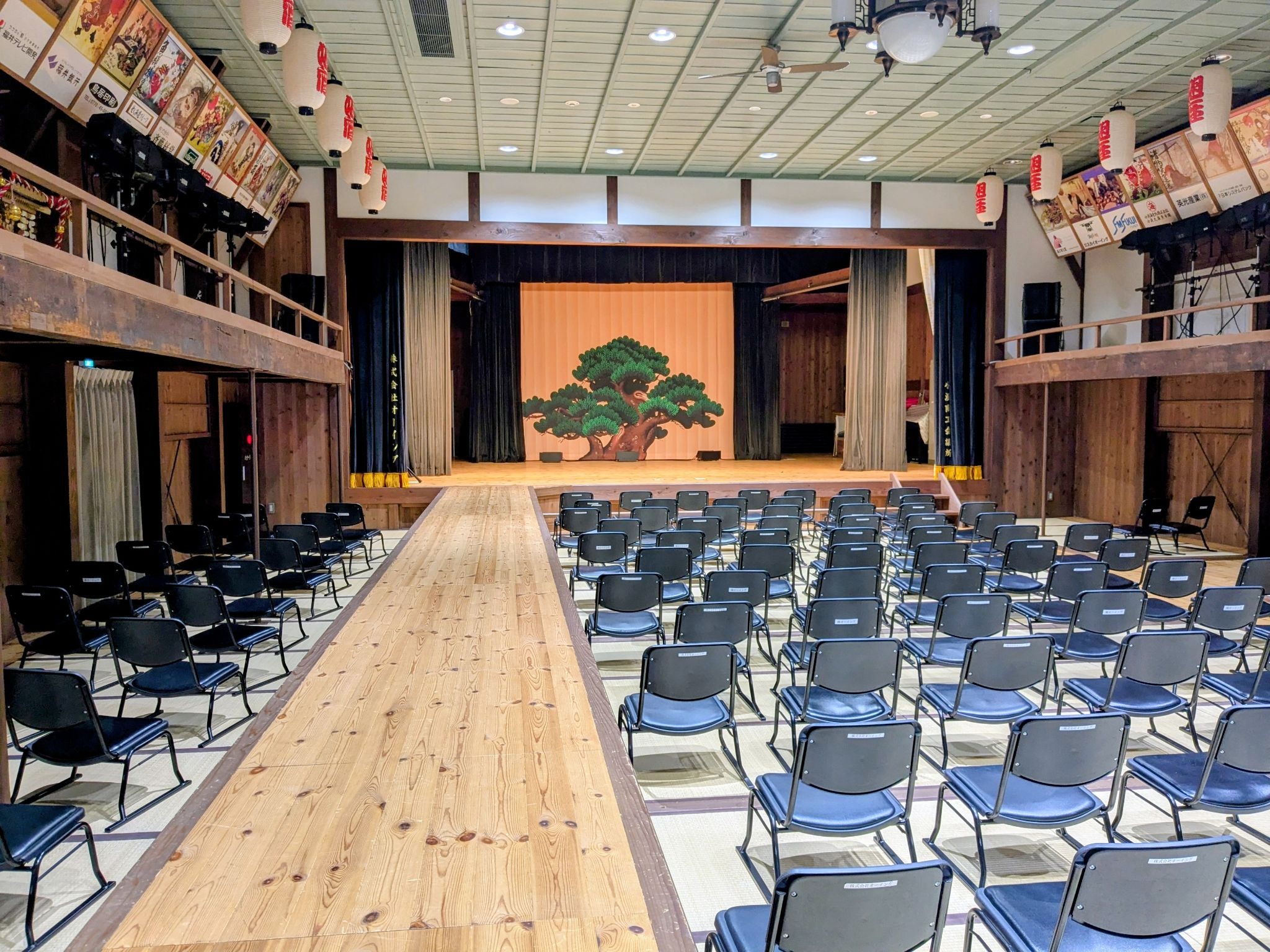 ホールに入ると、真っ先に目に飛び込んでくるのは舞台中央に描かれた立派な「松」の絵。