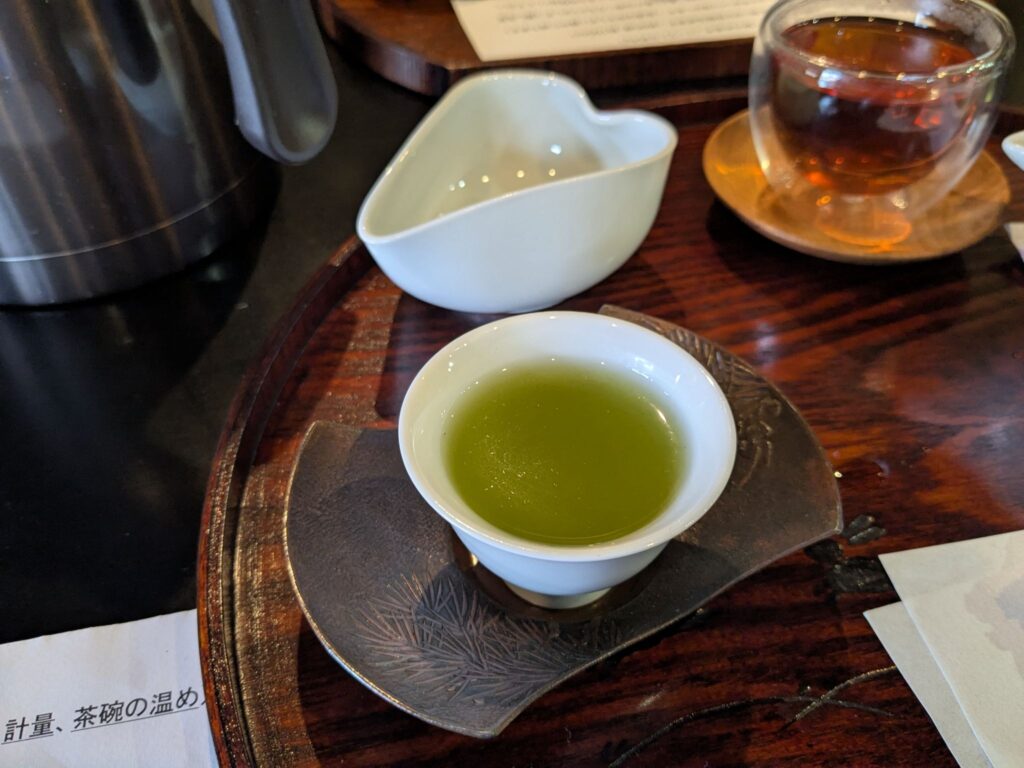 続いて2杯目。少し温度を上げて淹れていきます。1杯目とは違い、旨味よりもお茶の香りやすっきりとした味わいが楽しめました。個人的には抹茶を飲んでいるような、爽やかな味に感じられました。