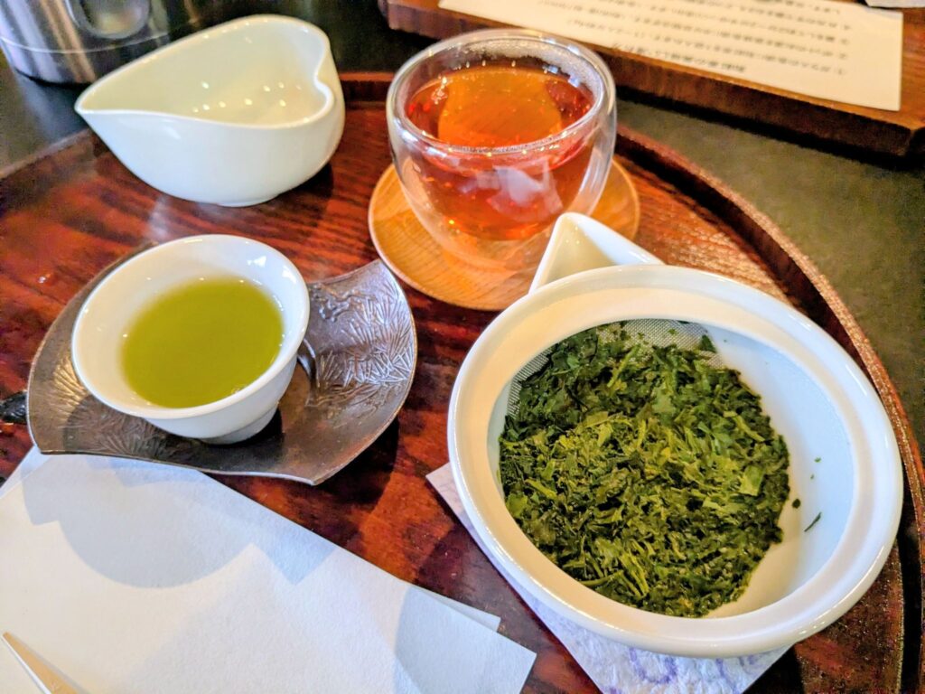 お店の方によると、「温度が低いとお茶の旨味が引き立ち、高いと苦味が立ち濃いめのスッキリとした味わいになるんですよ」とのことで、温度が違うだけで全く別の味わいが楽しめるのだなとビックリしました。