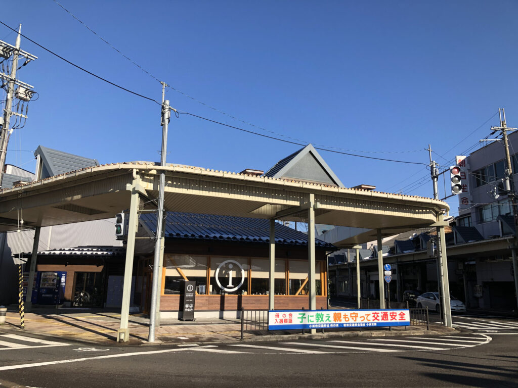 若狭おばま観光案内所は、JR小浜駅の目の前にある、大きな i (インフォメーション)マークが目印の建物です。