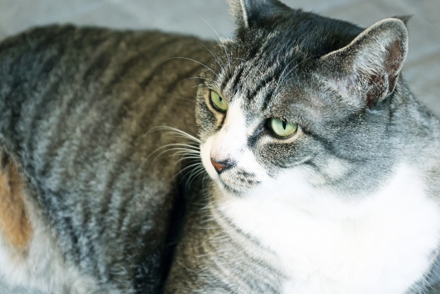 灰色と青色の鯖トラ柄の猫――ななちゃん。