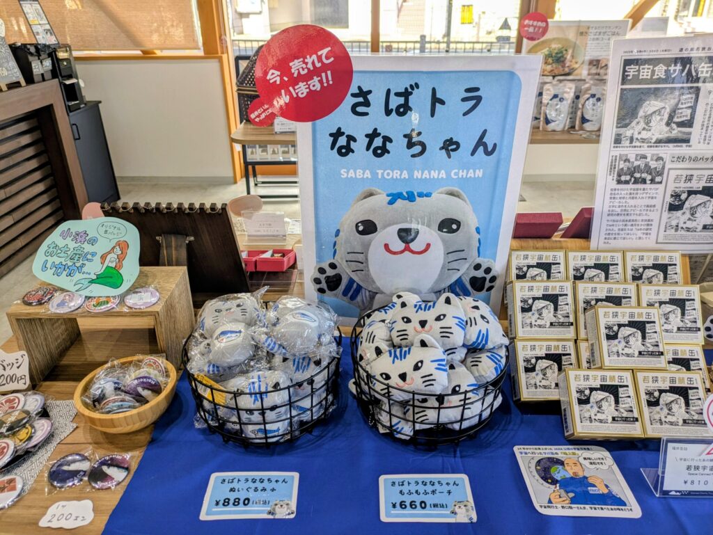 若狭おばま観光案内状では、さばトラななちゃんのグッズを買うことができます!