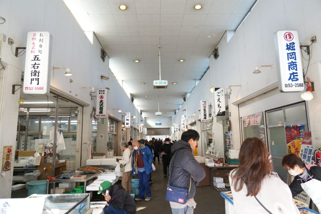 一般の方も購入いただける市場。 魚の鮮度、価格、豊富さには絶対の自信を持っています。 市場で仕入れた新鮮な魚を各店舗が販売していて、お店こだわりの干し物や加工品なども楽しみのひとつです。