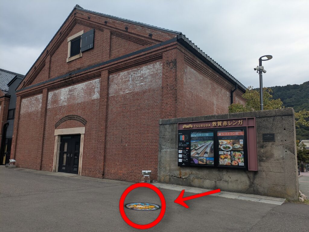 敦賀港のシンボル、敦賀赤レンガ倉庫に設置してありました。赤レンガ倉庫の中には、レストランや電車のジオラマが見れる博物館などが入っています。敦賀市のシンボルの風景を背景に、「カイリュー」「マッギョ」などのポケモンが描かれています。