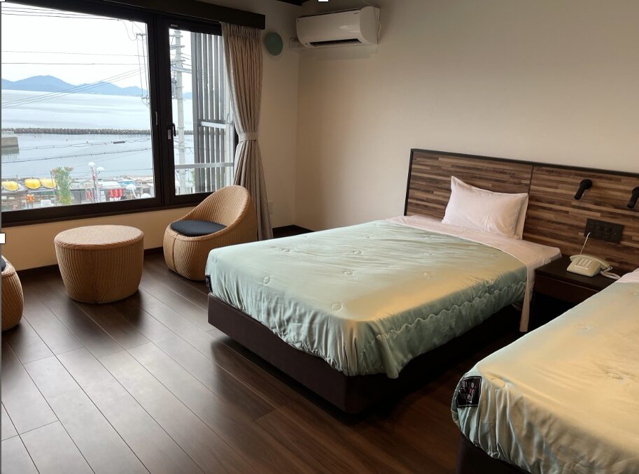 お昼は気軽にランチを、夜は少し贅沢にコース料理を。 おすすめは若狭牛リーズナブルサイコロステーキコース。 ご宿泊施設としても運営しており、お身体に癒しを与える落ち着きある洋室をご用意しています。 フローリング仕様で、浴室はウルトラファインバブルのシャワーヘッドを設置したお風呂となります。 また、隣接の【花椿】の展望浴場を無料でご利用いただけます。(華双寿に大浴場はございません)